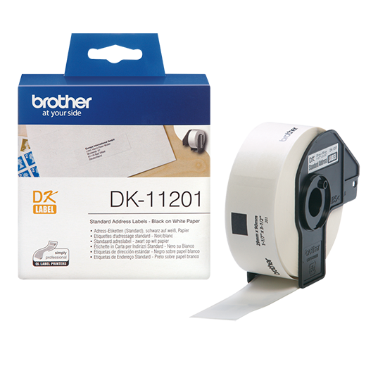 Review DK-11201 nhãn in cắt bế sẵn chữ đen nền trắng