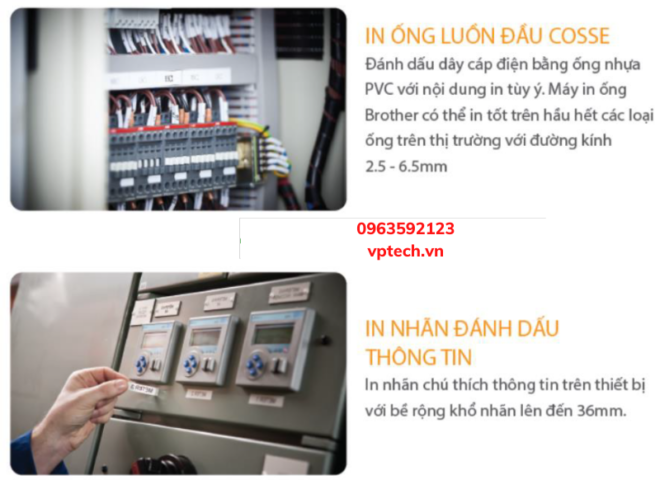 trường sử dụng hai động cơ trên máy, vừa in ống đánh dấu dây, vừa in tem nhãn siêu dính, giải pháp thông minh,
