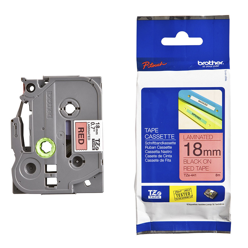 Review Nhãn in BROTHER TZE-441 chữ đen, nền đỏ, khổ 18mm